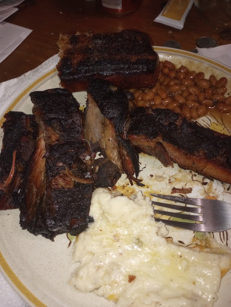 Carry out. Over smoked/cooked & dried out. Can you tell the difference between the piece of Taxas toast & the ribs ? (Hint) Toast is top by the beans. First time order from them. Never again. Horrible