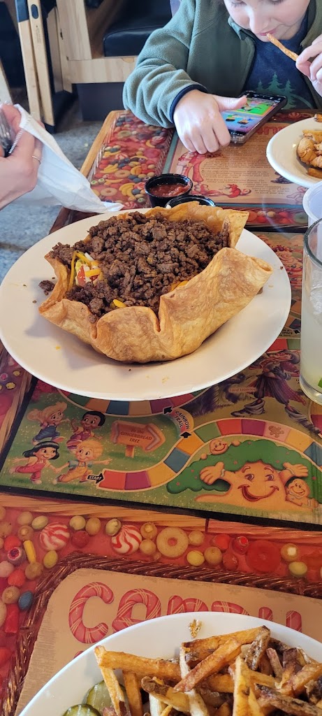 Server or bartender, I don't know which one he was, was slow as molasses in January. He seemed eager to please, but didn't understand how to wait on tables. He took our order by shouting to us from the computer screen situated behind the front bar, but accessible from the main dining area. Huh? First time for everything, I guess. The food took forever, I mean probably 40 minutes. There was 1 other table with 2 people in the main dining room, & 1-2 people eating in the bar. Food (taco salad and club sandwich) was acceptable, when we FINALLY got it, but the craziness of the service was unacceptable, with the waiter flitting around from room to room, and doing basically nothing, to the way he took our order. It was just NUTS!