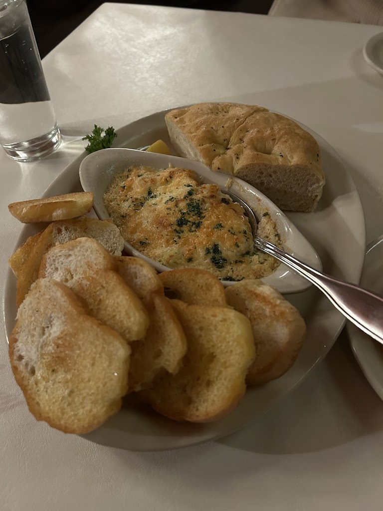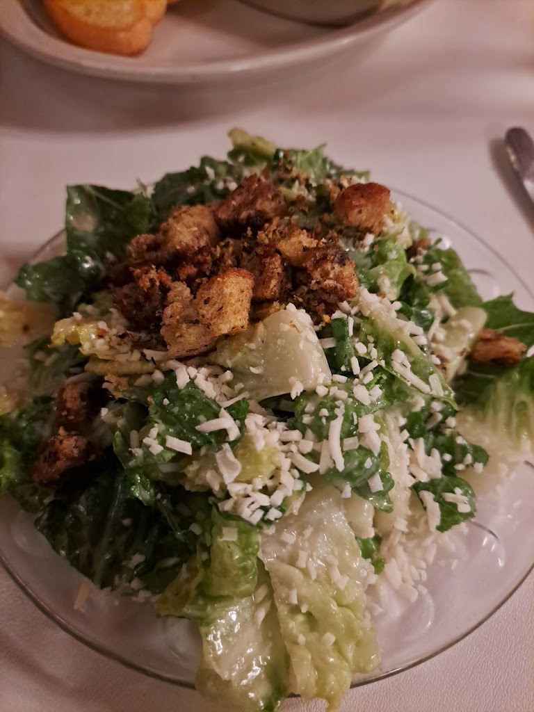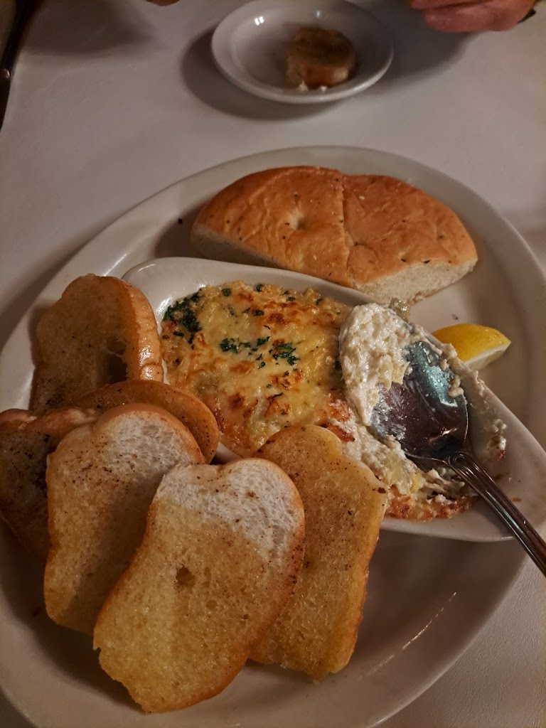 ..don't know what that dressing was not, ceasor. The shrimp was done perfectly though. The crab and artichoke dip I saw had so many good reviews, I didn't think much of it, it had no flavor...the top was over done like leather with parsley in crusted in it, that was over powering. The service was strange no warmth or friendliness. Just a bad experience at the end of a busy work day. The garlic toast was good the other bread was very generic.