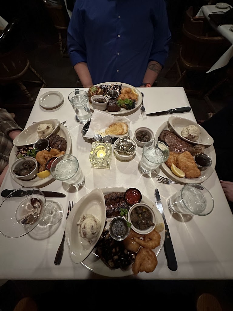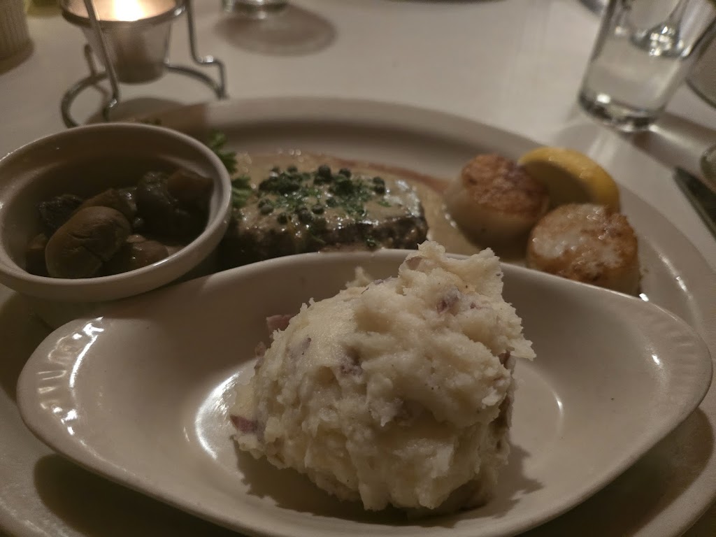 The garlic bread is a reason to come back by itself. Steaks, fish, scallops were all cooked to perfection. Clam chowder was great. Brandy old fashions were strong.