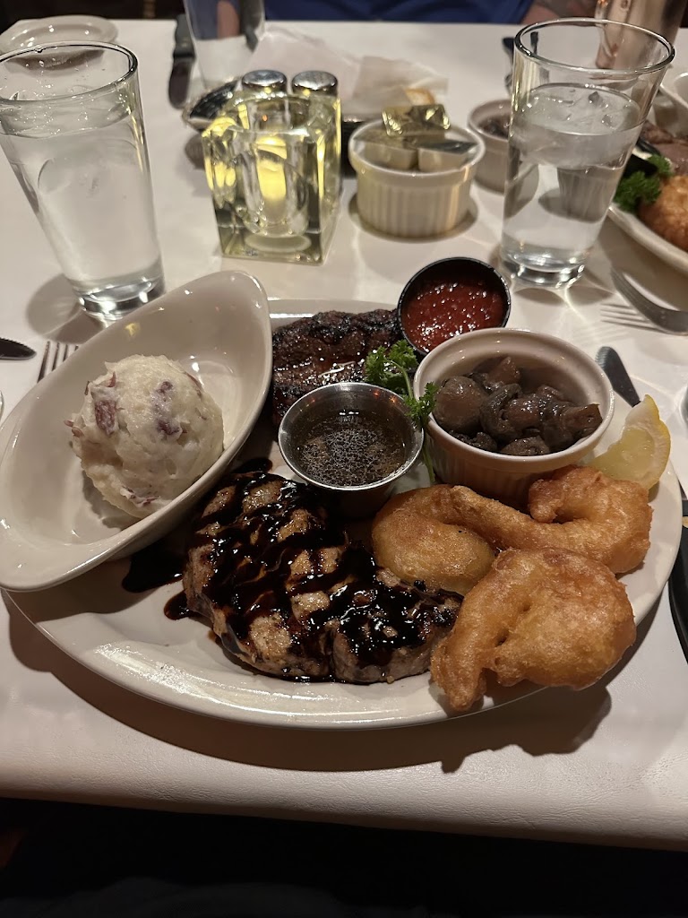 We loved the cheese curds, Caesar salad, battered shrimp, and prime rib. Super disappointed in the steak fries as they were chewy….not good. Mashed potatoes were okay. Definitely would have liked better tasting sides! Love the atmosphere.