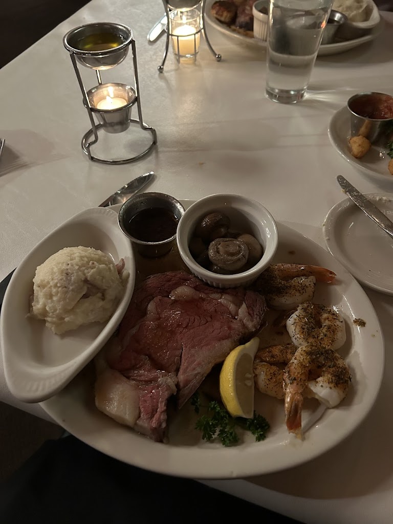 Went for the Prime Rib and it was pretty amazing. Waitress and staff were really great as well. The room was a little dated, but took you back in time a bit and was flawless. The whole experience was very sayisfying.