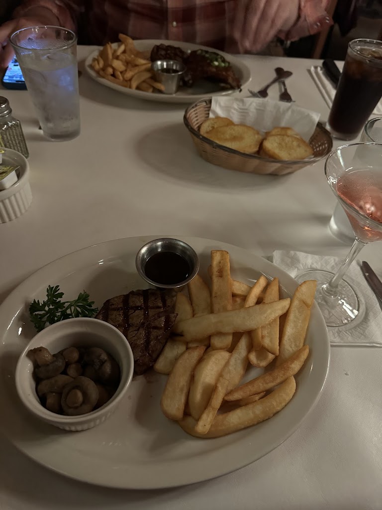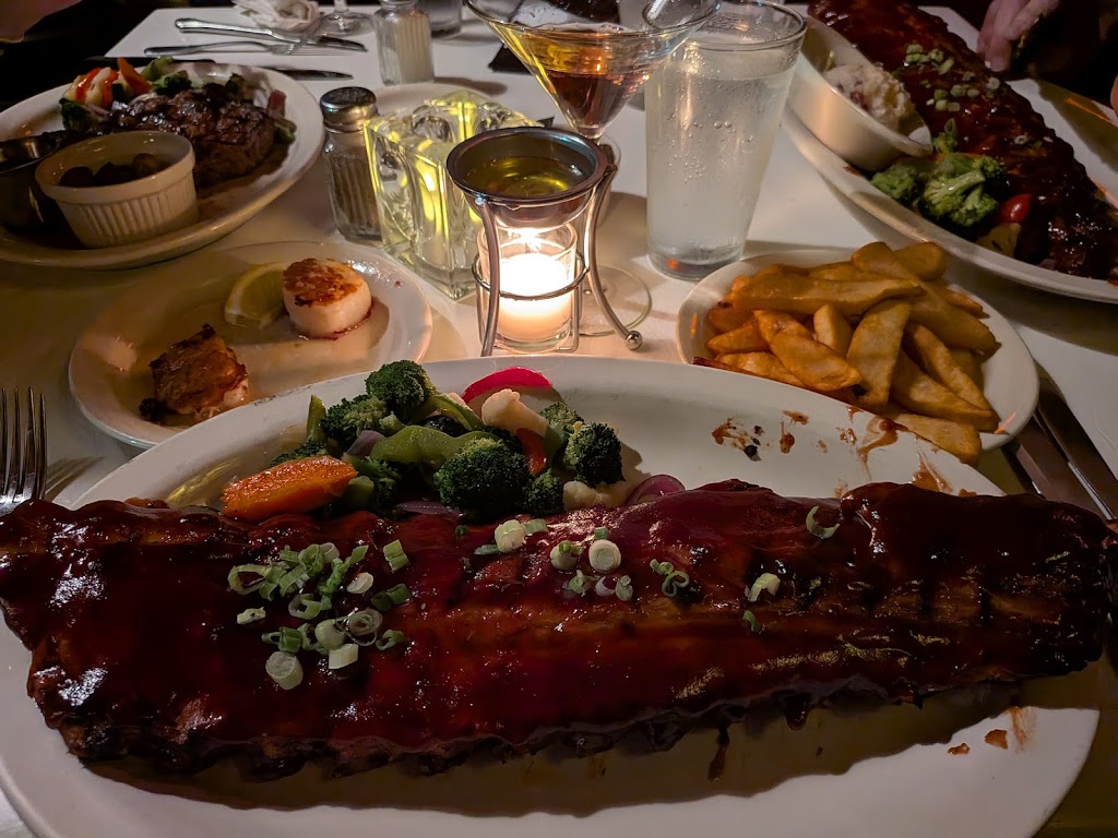 We love this place. I’m not usually a big steak eater, but their ribeye is spot-on. The scallops, shrimp, and seafood specials are always excellent. Garlic bread and mashed potatoes are crave-able. Stiff drinks, and always worth trying to save room for tiramisu. Look forward to trying the ribs soon. I’m always surprised that we only end up spending maybe $20 more for the two of us than we would at some mediocre chain. Make a reservation :)