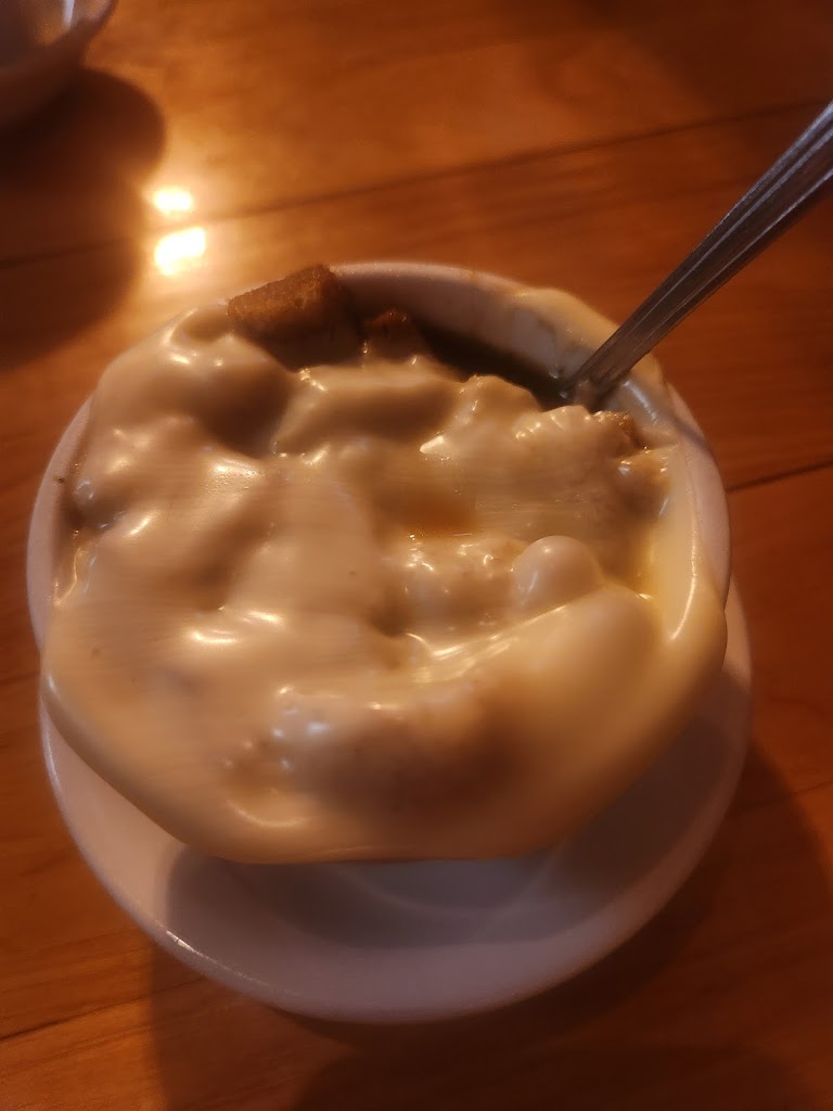 Baked French Onion Soup- we both finished our cups. The cheese was incredibly thick. Not either of our #1 in the BFO soup category, but edible!