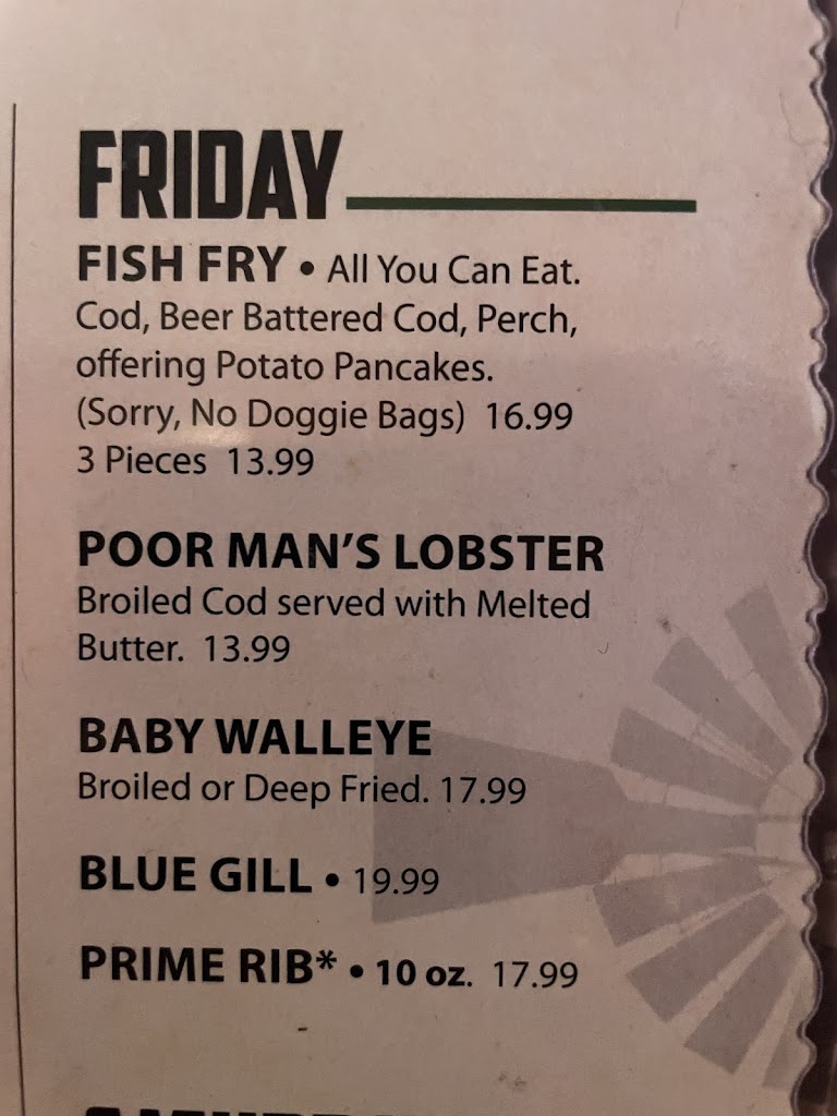 Great Friday Fish Fry. The owner served our table herself they were so busy! Our waitress Bianca was our waitress. She came to our table so many times to make sure we were doing ok. Great service, Great Food. Just all around good atmosphere.