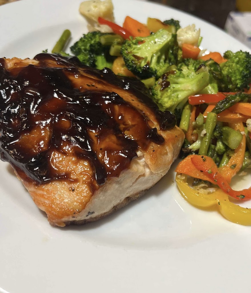 We ate outside and it was beautiful weather. Dinner was served quickly. Small menu, but it was delicious. I had a half rack of ribs, grilled vegetables and wild rice.