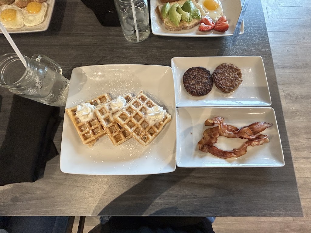 My wife’s only complaint on the Isaac special was that the bacon wasn’t crispy and the waffle was a little soggy/cold with the whip cream