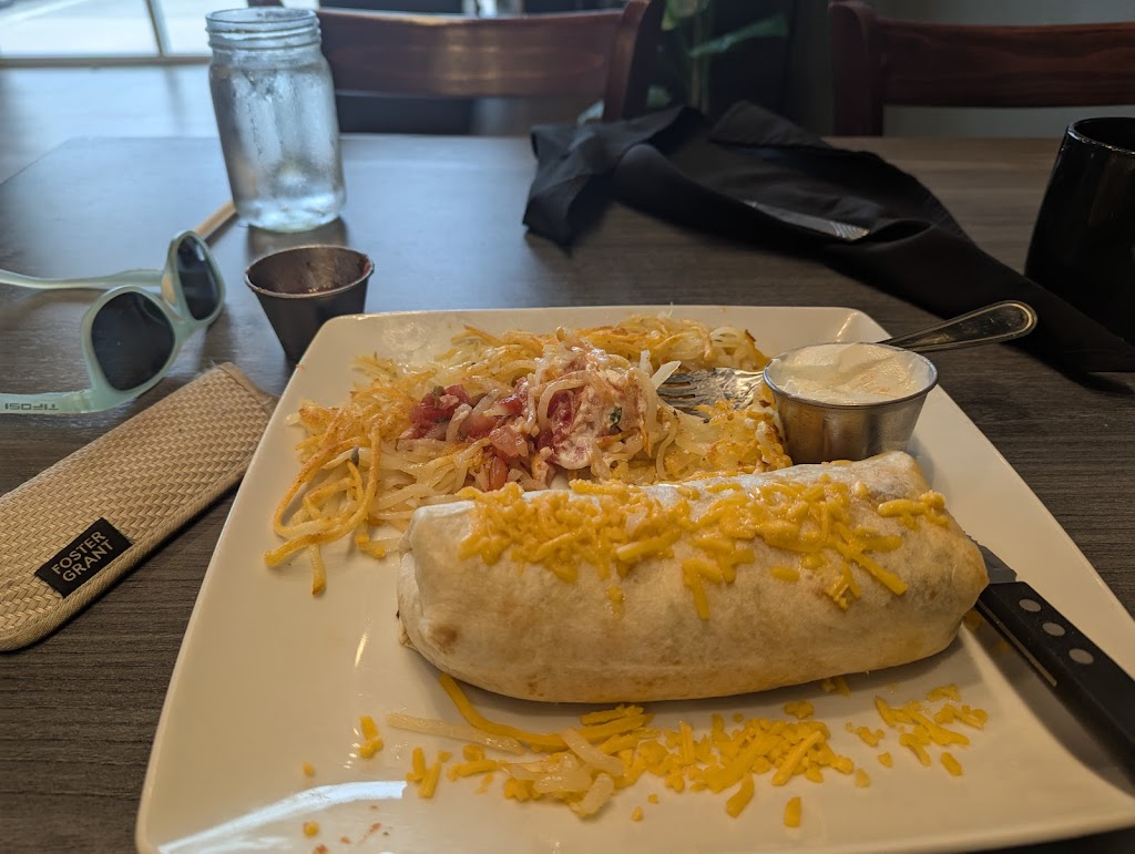Had the Mexican Burrito 🌯 with chorizo and hash browns came with side of salsa and sour cream mix that into hash browns - damn good