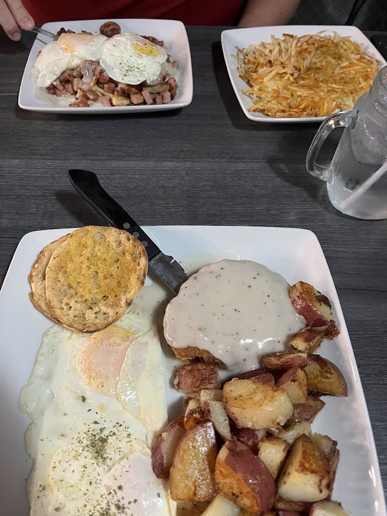So we went here for the first time today. I ordered a biscuits and gravy skillet which while ordering the menu said the skillets comes with eggs and toast. Normal people would think that would be all the skillets since they’re labeled underneath as circled. Apparently the biscuits and gravy aren’t included in with that so we were charged $3 for toast. Instead of taking it off just this once the waitress got combative saying it’s not included. We won’t be coming back. Maybe specify on your menu that that one doesn’t come with it. The staff really wasn’t that personable either.