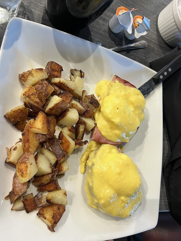 Went for breakfast this morning. Super cute spot! Husband had the eggs Benedict, which is his favorite breakfast and said it was really good! I had the berry crepes - also fabulous. Good menu selections, we will definitely be back!