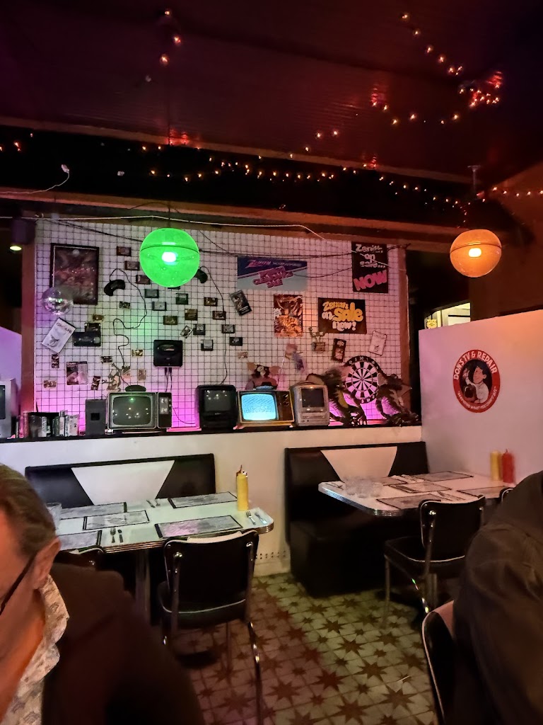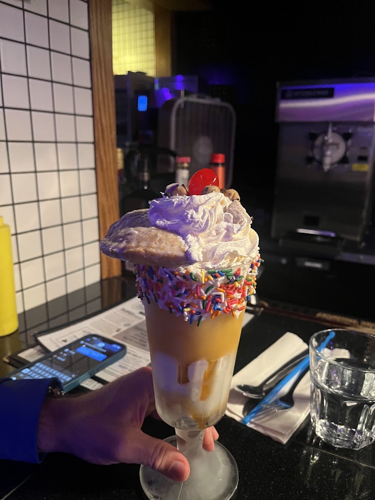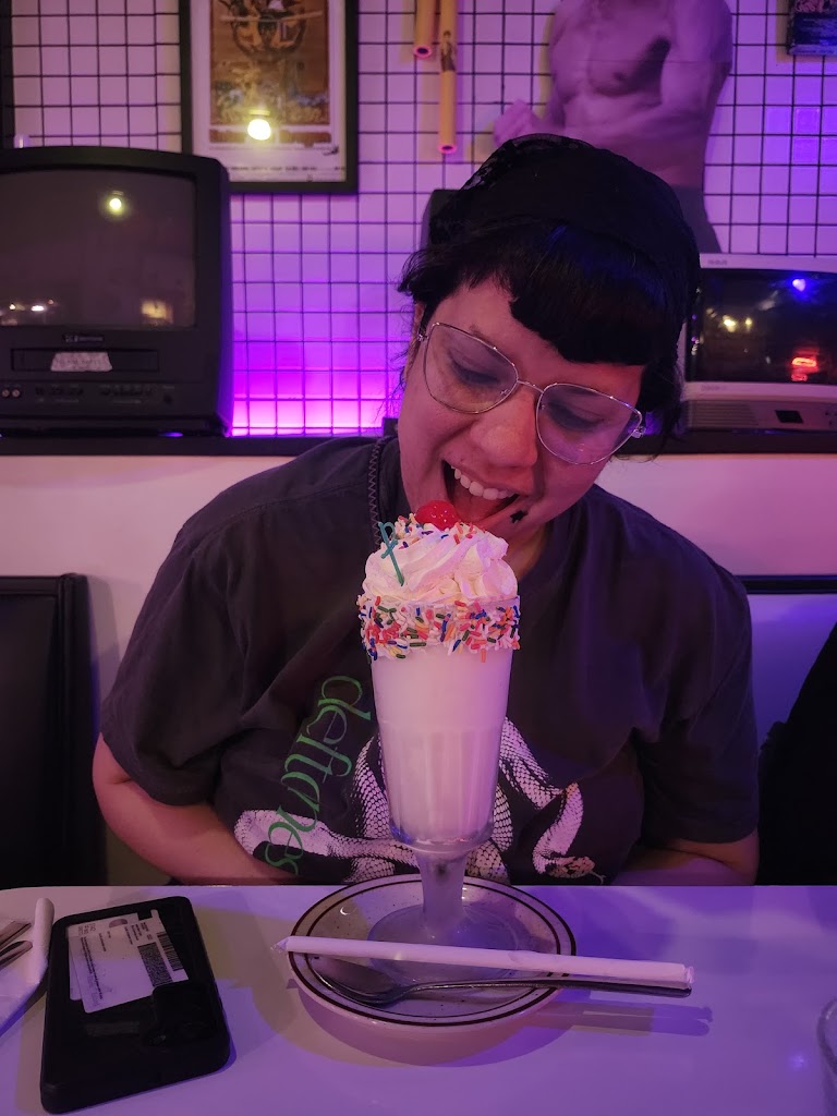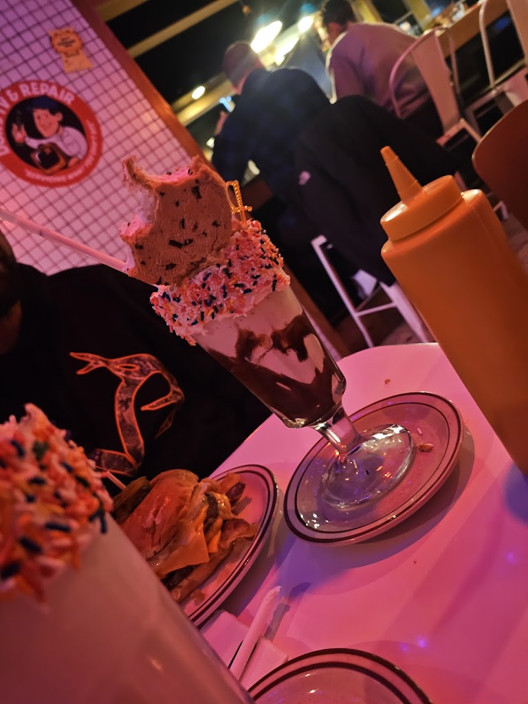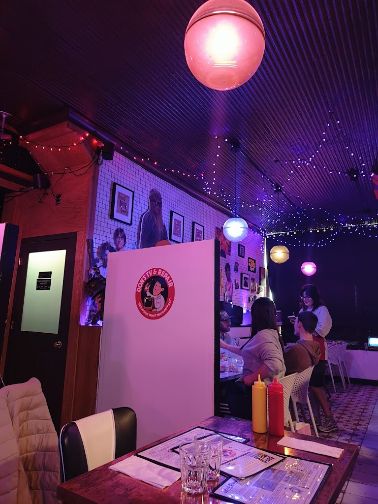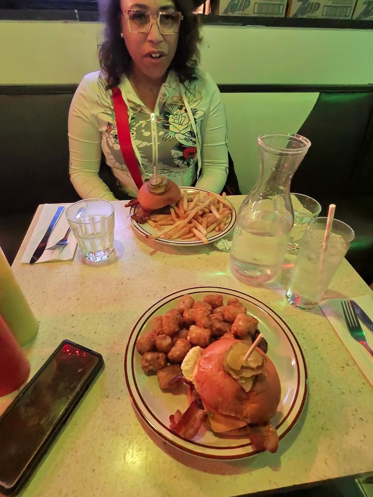 Fun atmosphere, fun experience. Kind of flubbed the process with no reservation, but they made a space for us on the fly. Really enjoyed the solid burgers, nerd theme cocktails and the super strong and tasty boozy shakes. The food is diner fair so be prepared for some oil, lol.