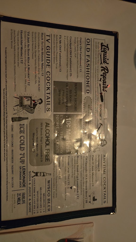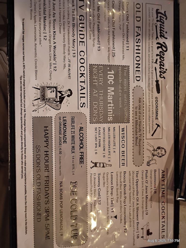 Don's TV & Repair Speakeasy was such a cool experience. We brought our daughter here to celebrate her birthday with huge, delicious milkshakes. It was fun to tell her about the "retro" stuff from our childhood all over the place. Our server Mikey was very friendly, attentive, and explained their specials well. An awesome experience as a whole.