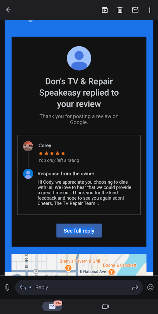 we're visiting from out of town on a bike tour and decided to eat at don's tv repair & speakeasy because it looked cool from the google overview and was in the same neighborhood where we were to meet friends for karaoke later in the evening. we stepped in at about 6:45 on a wednesday and were told it would be a 45 minute wait for 2 to sit at the bar which was a little insane to me it being a wednesday night in early october but whatever, we weren't in a terrible rush. they asked for my number and i got a text from open table saying they would alert me when our table was ready. that was 14 hours ago, lol. i guess the food is so good that no one wanted to leave! after waiting an hour we wound up eating elsewhere. oh, also there was nowhere outside to lock our bikes up. yer a corner lot, get a bike rack.