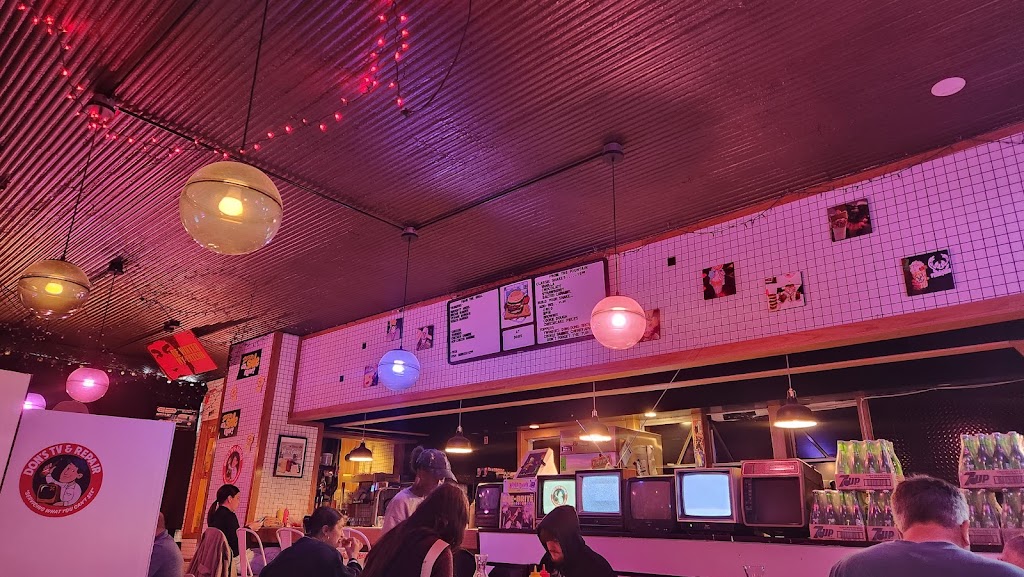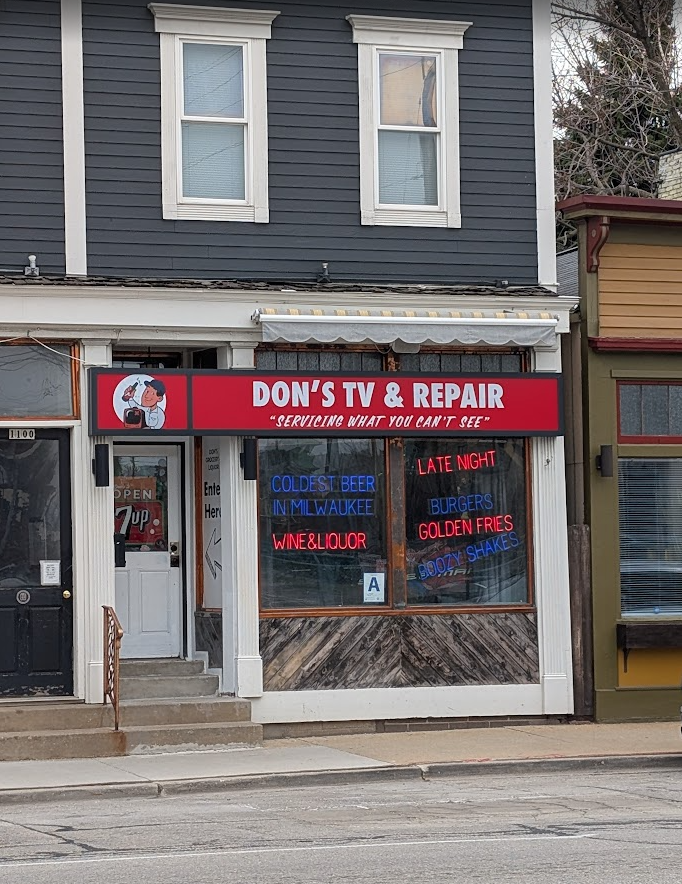 Hidden behind the storefront of “Tv and Repair”, Don’s speakeasy serves up the smash burgers and boozy shakes that made this once diner a neighborhood classic.