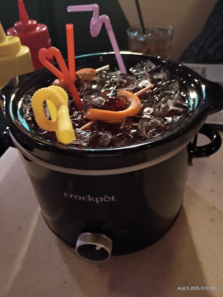Very cool and unique place! 80's retro themed speakeasy type place that has delicious cheese butter burgers and boozey ice cream drinks that are spectacular! They also have an old fashioned cocktail drink served inside of a crock pot that was very unique. Definitely a must stop place!