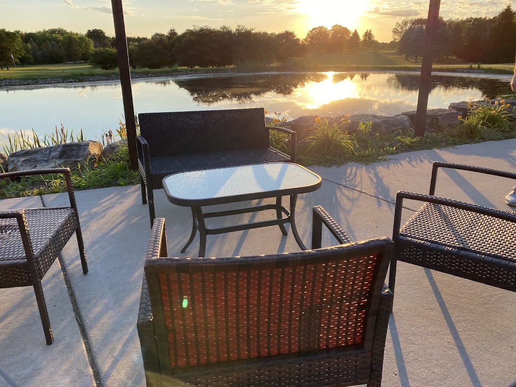 Nice outdoor patio & outdoor bar. There’s also a driving range a short cart ride from the clubhouse.