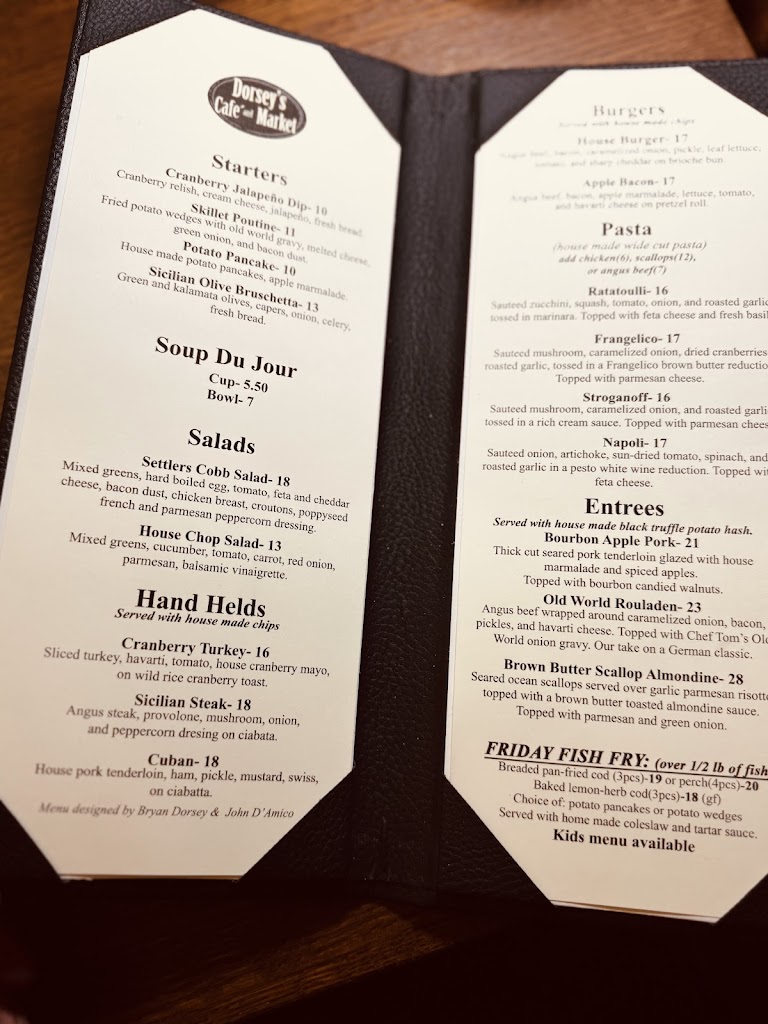 Door County Cherry Old Fashioned is fabulous! John makes the best soups anywhere so the Clam Chowder so delicious! I had the Chicken Florentine and my husband had the Bourbon Apple Pork- both wonderful! Lots to take away. Relaxed but upbeat atmosphere. Highly recommend!