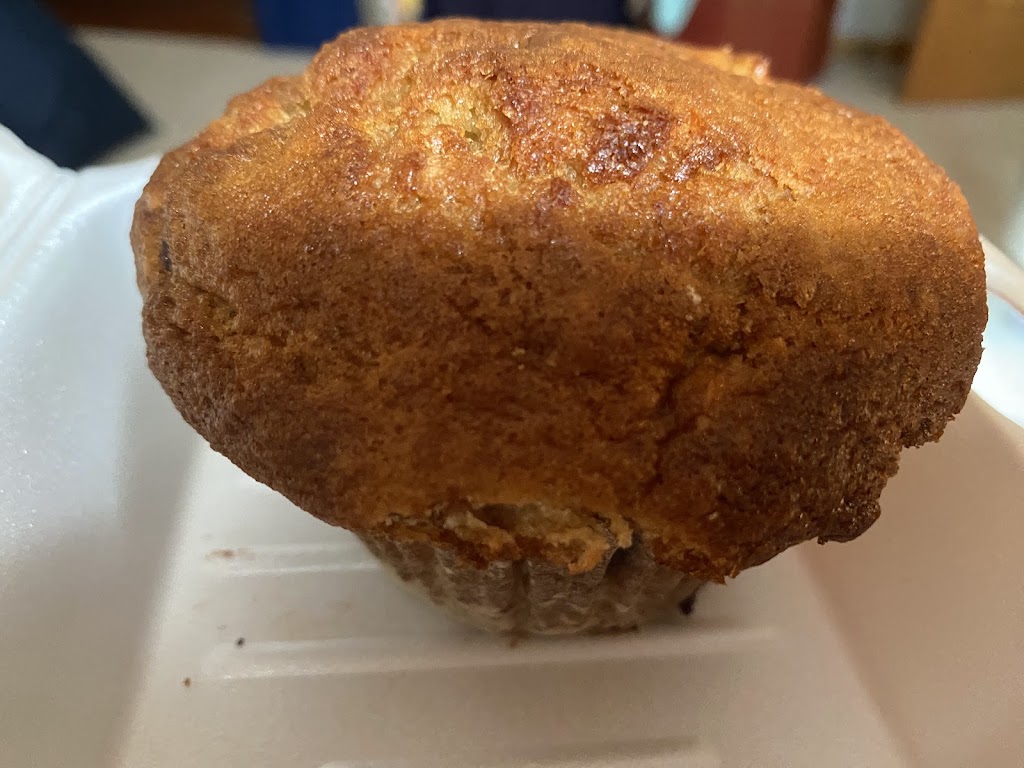 I enjoyed scrambled egg nicely browned, hashbrowns, crisp, bacon, a two biscuits and gravy. I took home, for the next day, a chocolate chip Duck Butt muffin.