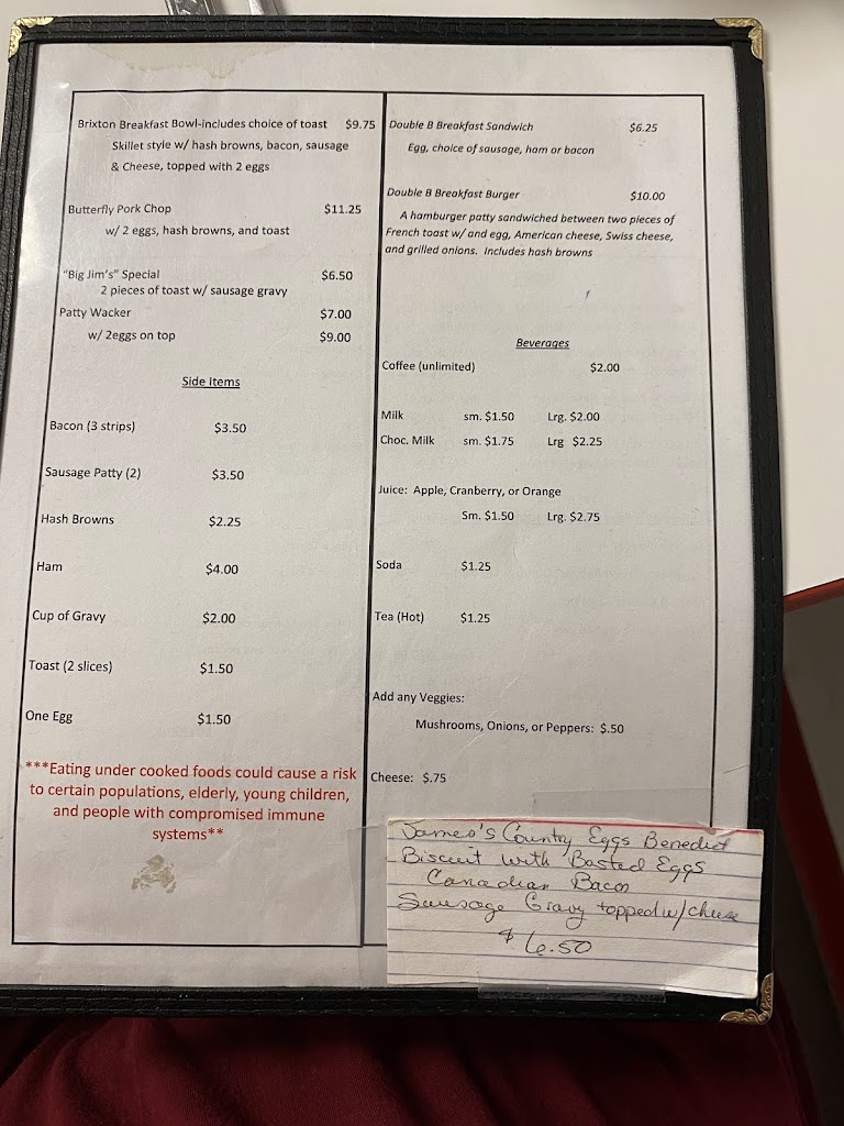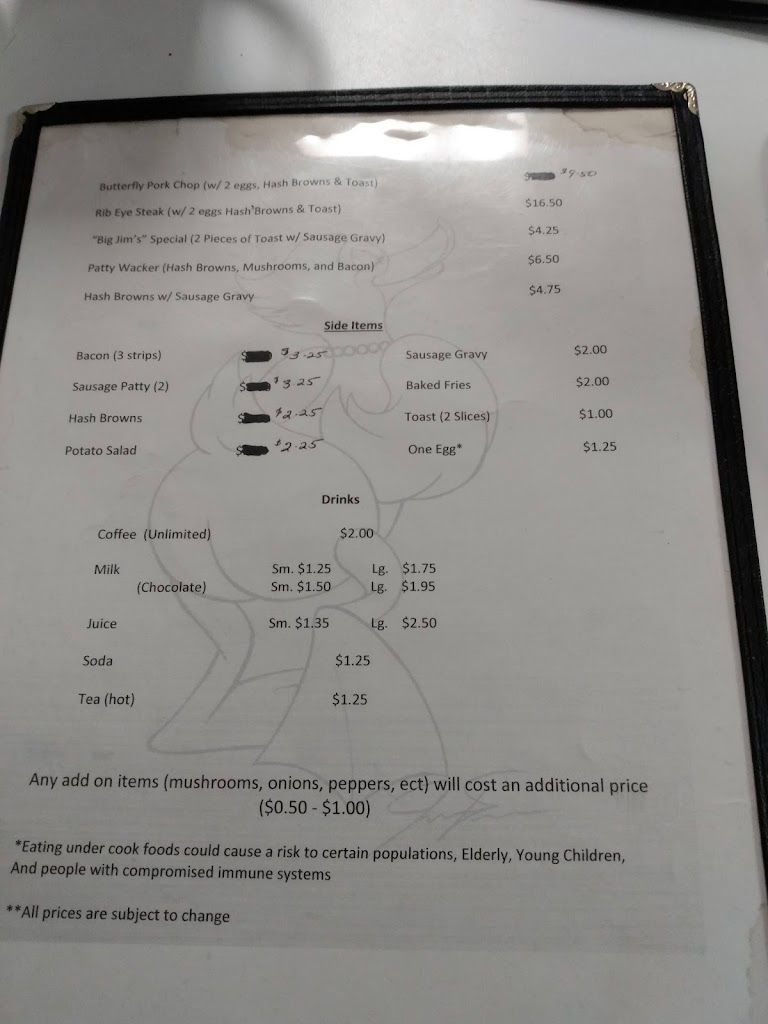 My three companions were very happy with their "Biscuits and Gravy" Omelets. Not on many menus. Lots of food. Good flavor. Down home atmosphere.