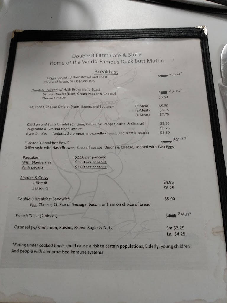 Enjoyed spending the morning for breakfast with Bev and Dan! The food is home cook and made fresh right on the farm! We recommend the denver omolet, and biscuits and gravy.The owners are very friendly. Like being part of the family!!