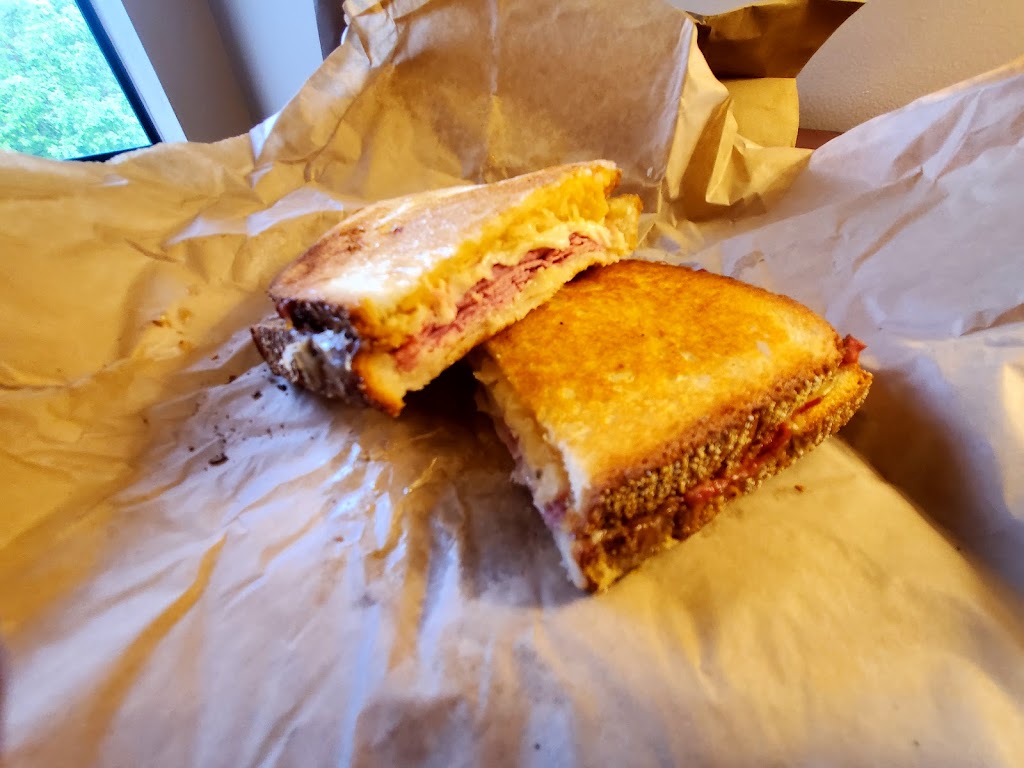 It's a good sandwich but it's pretty pricey, takes quite a long time to actually get your food around lunch time because they only have 1 press, and they don't use real butter but rather spray butter before going into the press. For an $11 sandwich that took 15 minutes to get things could be just a tad better to turn a pretty good sandwich into an excellent one.