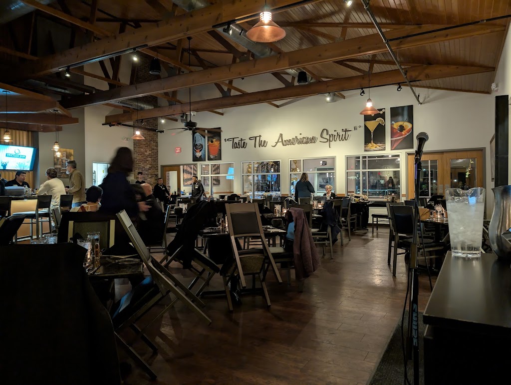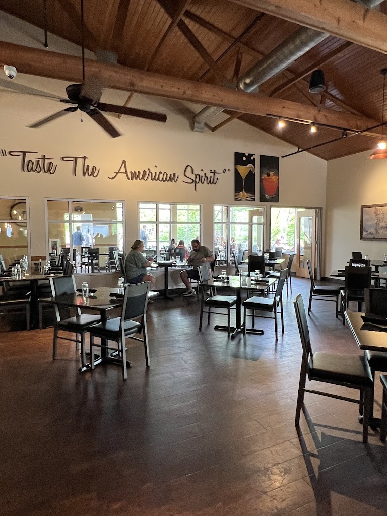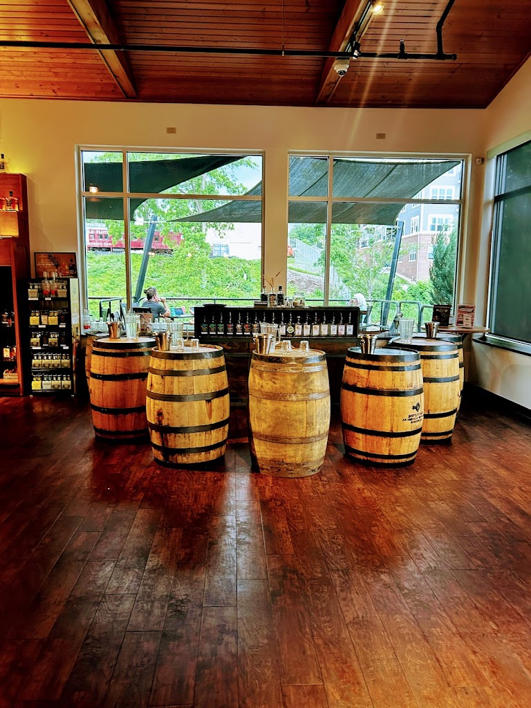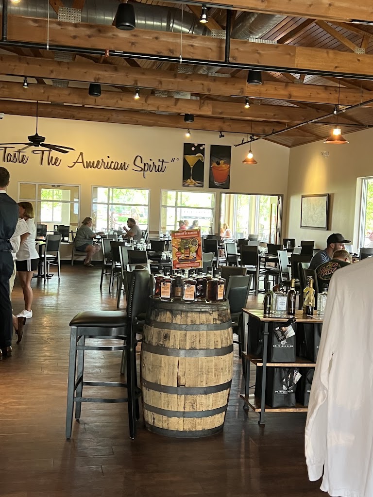 Their spirits are spectacular. The single barrel bourbon and double cask gin were our favs. The food is really nice too. The vibe inside feels pretty classy and clean. Right on the river.