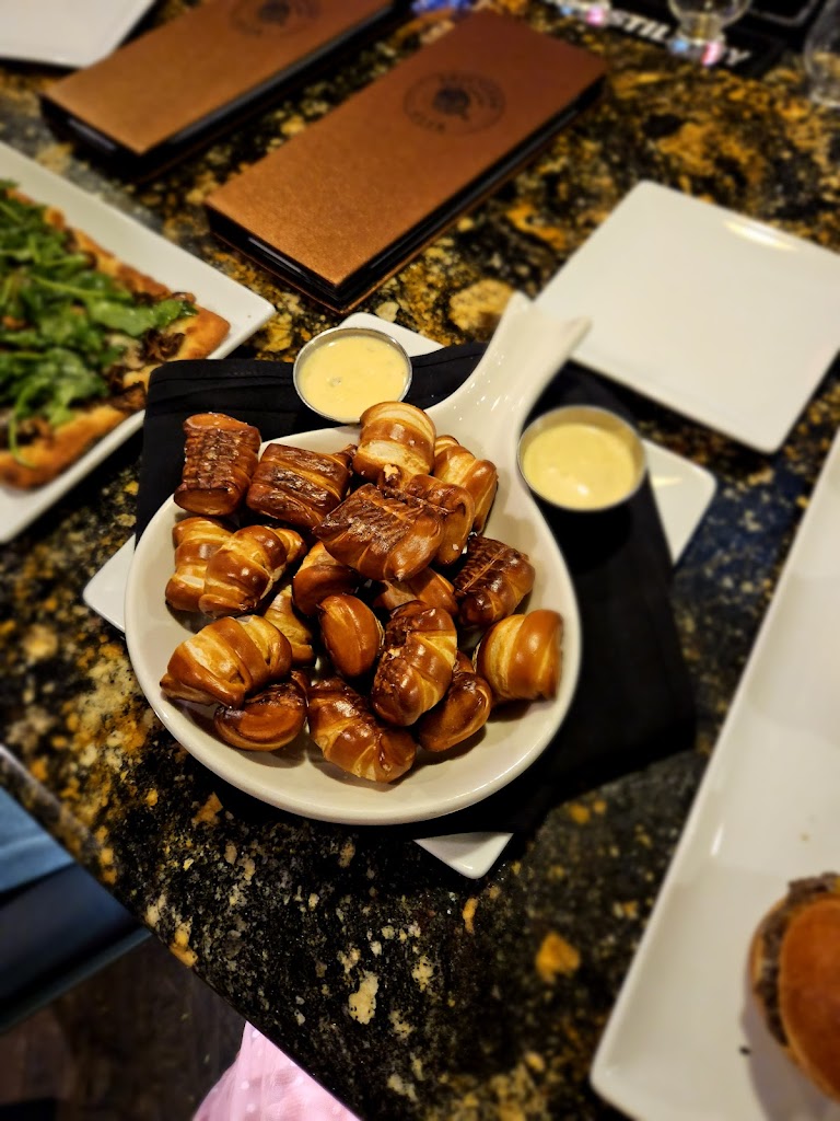 Disclaimer, the food was great and we got seated right away. However, we came to visit as we are whiskey lovers and I ordered a neat pour of the wheated bourbon. It was okay, but when I went to pay we got a 5 dollar up charge (on the already 10 dollar order of whiskey) because it was a “neat pour”. Our waiter told us well after the fact that he has to add an extra 5 dollars for neat pours. I didn’t get any extra compared to the normal flight pours and it seemed like a big scam. Very disappointed with the lack of communication on that as it would have changed my order and has left a very sour tastes in my mouth. The waiter informed us he knew of the rule, but only waited until after we asked about the charge to make a comment about it. He told us he didn’t agree with it, but so graciously didn’t give us a heads up before hand.