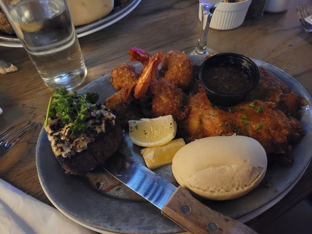 Seeing the other dinners around us,the walleye looked outstanding, and I'd do the filet and shrimp combo next time.