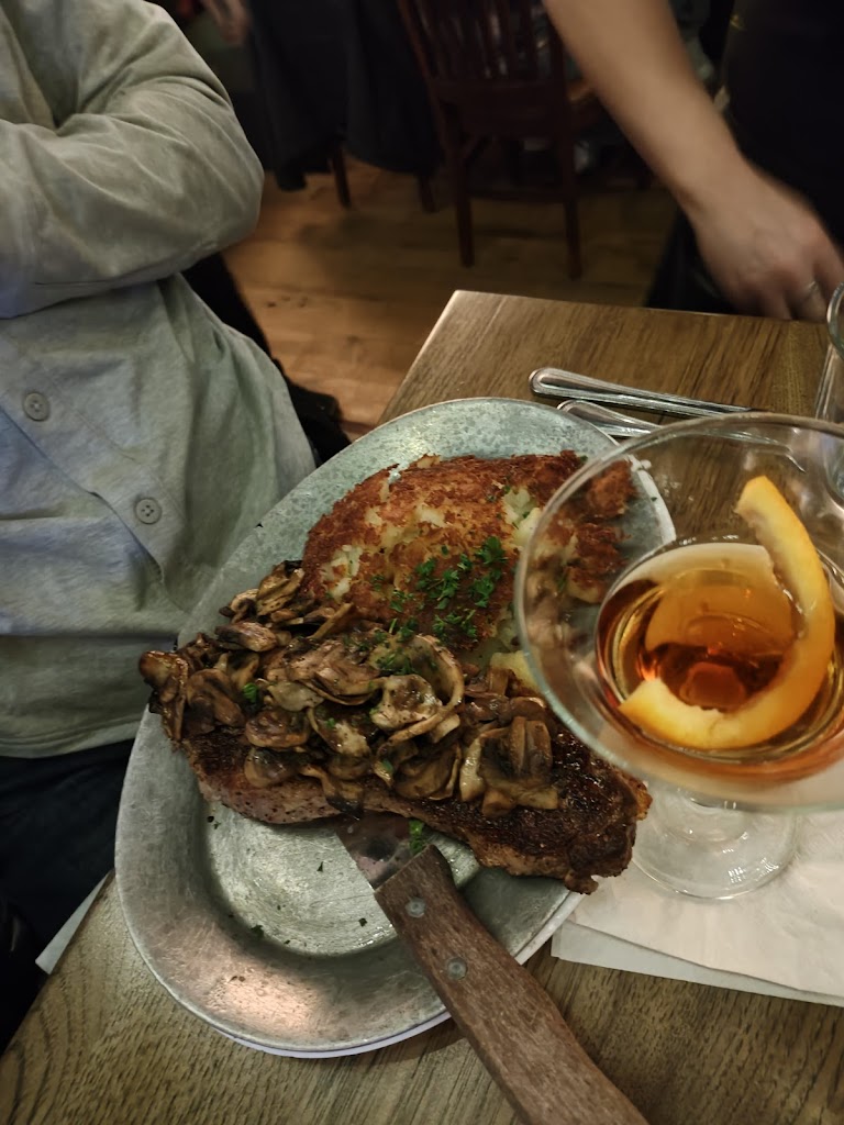 I had been there before for drinks and they make very good cocktails but had been waiting patiently for their food service. They recently got that started so my wife and I tried it out. Food was great. I got the filet mignon and shrimp and my wife got the scallops. There were 5 good sized scallops on her plate which was nice. At other establishments it seems like one can expect 3, maybe 4. Their atmosphere is nice as well now that they have proper seating tables. I was curious how they'd handle the transition from crowded, loud, largely standing room only to a proper sit down restaurant and it seems like they've committed and will execute well on that sit down experience. I'm so glad they're finally up and running in Mt Horeb.