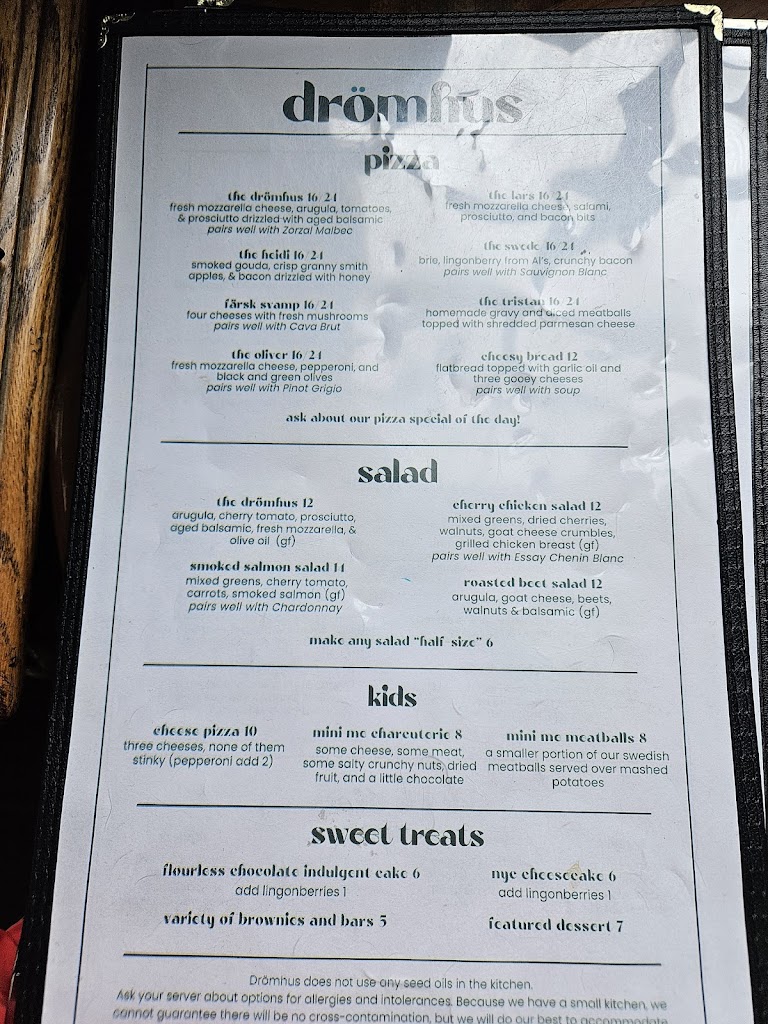 We walked into the Dromhus and thought what a charming place! Then Heather greeted us with genuine warmth. We were already feeling good about our decision to stop in - but then, we were brought our delicious food My family truly enjoyed everything we ate. It’s a relatively small menu and we tried many of the dishes. All of them were great but if want to only eat one item you must get the Swedish meatballs - they are amazing! And don’t forget to take a selfie in the bathroom!