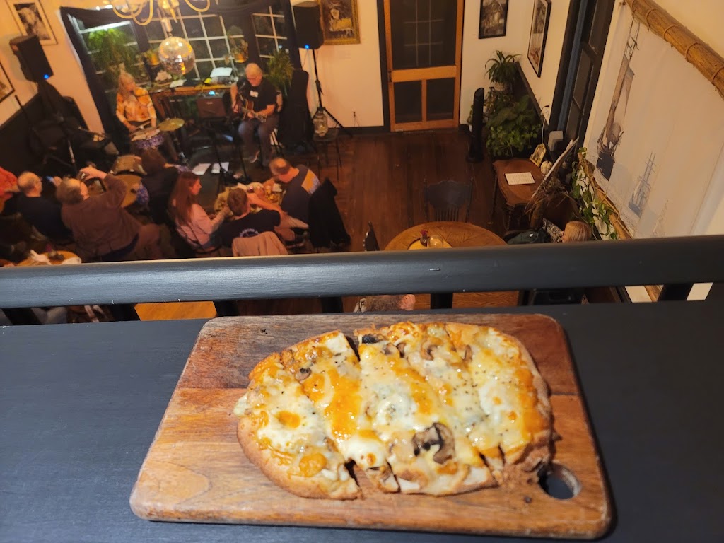 A friend and I were passing through Sturgeon Bay on a Saturday evening and stopped in for a light supper. They had great live music and a packed house. Fortunately, we found a couple of seats up in the loft. Service was super friendly. We shared a small mushroom flatbread and some meatballs, and it was all delicious. Lovely atmosphere and great vibes.
