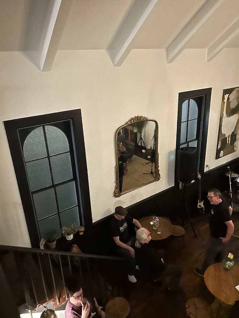Beautiful old church remodeled into a wine bar with music. Delicious wine and great people.