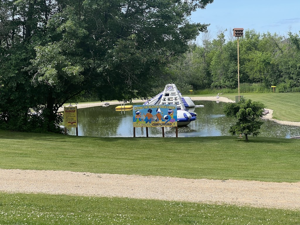 We stayed at Duck Creek Campground for the Water Wars Weekend and had a ton of fun. Even if there wasn't an event, the campground would have been great. The pond is clean and inflatables are in great condition. Don't bring scooters for the kids because it's almost all gravel. We definitely plan to stay again!