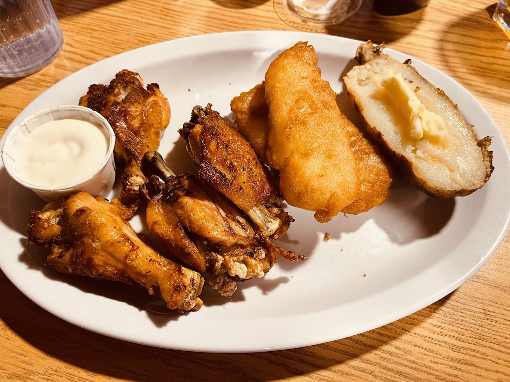 We ordered the cod but also ordered the chicken wings we split the meal and was delicious. Everything was cooked to the right temperature which made it super enjoyable some places have a hard time with this task. The waitress was super nice and she was working super hard. The place was packed!