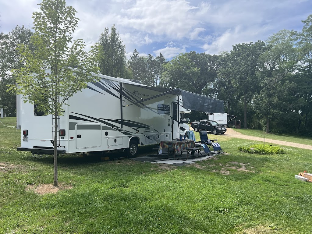 Very pleasant campground. The owners are very kind and attentive. The grounds are really well maintained and we had a great time in the pond. Jayco 29MV class C.