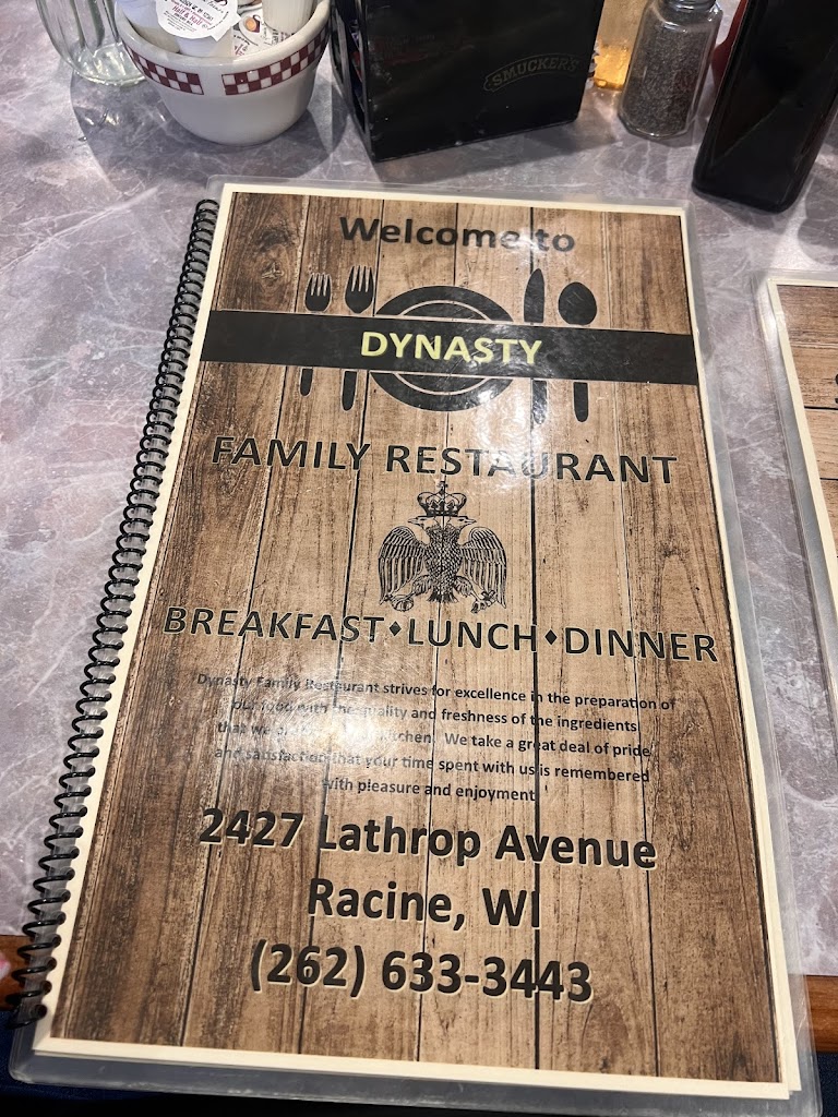 This was a Greek family owned restaurant that was sold along with the recipes apparently. If you like this sort of diner with reasonably edible food, you will like the Dynasty. They offer a glass of wine and dessert with specials, which is nice. Their pumpkin pie looks like it is from 1872, but again edible. They serve overcooked green beans with most meals. Doesn't seem like they're getting the message when those continually return to the kitchen uneaten. The waitresses are kind, patient, and attentive. Restaurant and women's bathroom seem reasonably clean.