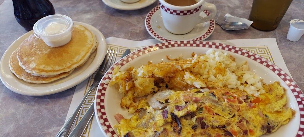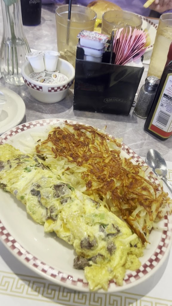 First time dining in this restaurant. It was bustling with customers on a Wednesday morning! We went on Valentines 💝, so maybe that was why it was so busy. Very clean establishment. Friendly hostess and wait staff. We started with a cup of coffee which was good and endless! I had the Dynasty omlet with Hashbrowns with a side of 2 small pancakes! Omlet consists of eggs, cheese, onion, green pepper, tomato, sausage, ham, and bacon. It was delicious. The Hashbrowns were light and fluffy inside and crispy outside. The pancakes were light and fluffy also! Prices are better than average, with large portions. My sister had the Greek omlet, which she really liked. We both took home half the omlet and Hashbrowns because we couldn't eat all of it! I highly recommend this place. They also have a full mini bar, a diner counter that you can sit at besides booths and tables. We will be going back soon!