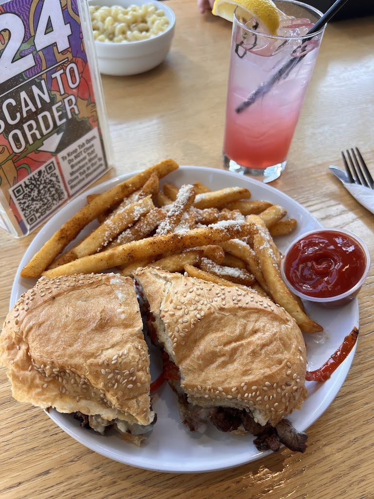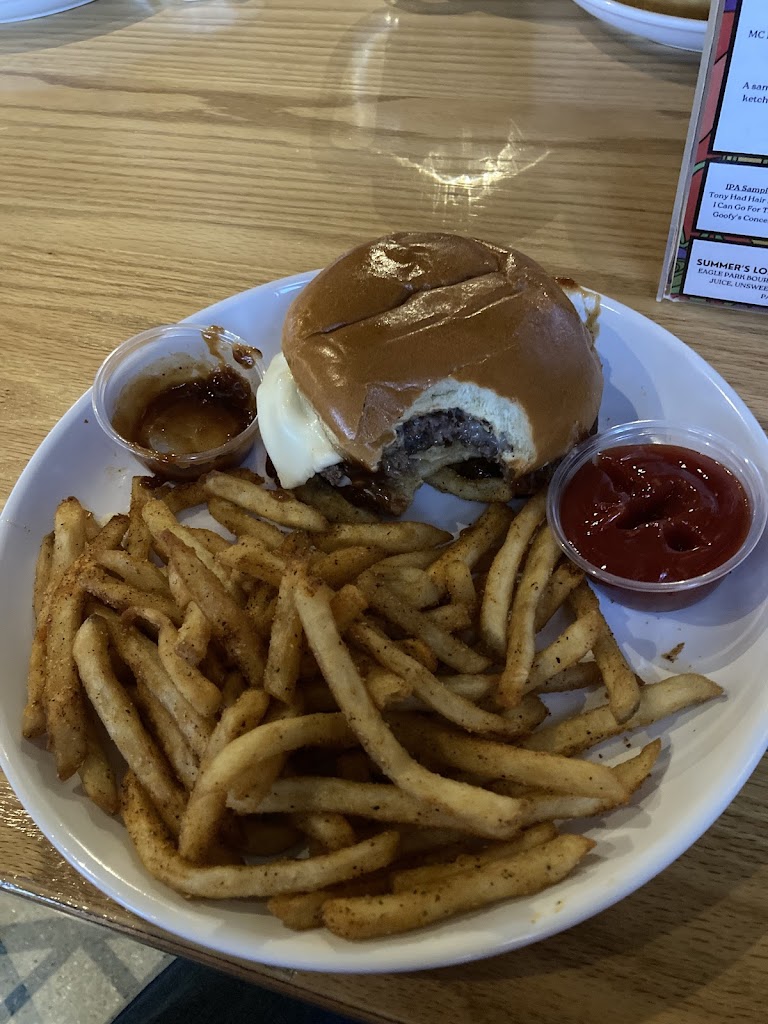 Neither my husband nor I are drinking right now so we can’t speak to the beers, but they had an impressive spread (and some hard smoothies we’re anxious to try). Fries were delicious and they have some great sauces - would highly recommend the garlic aioli with the fries! My husband got the ABC chicken sandwich, which was great. I will say the Nashville hot chicken was not good - really no flavor except a little heat at the end. I love a good hot chicken sandwich so this one was disappointing, but overall experience was good so we’d definitely come back sometime.