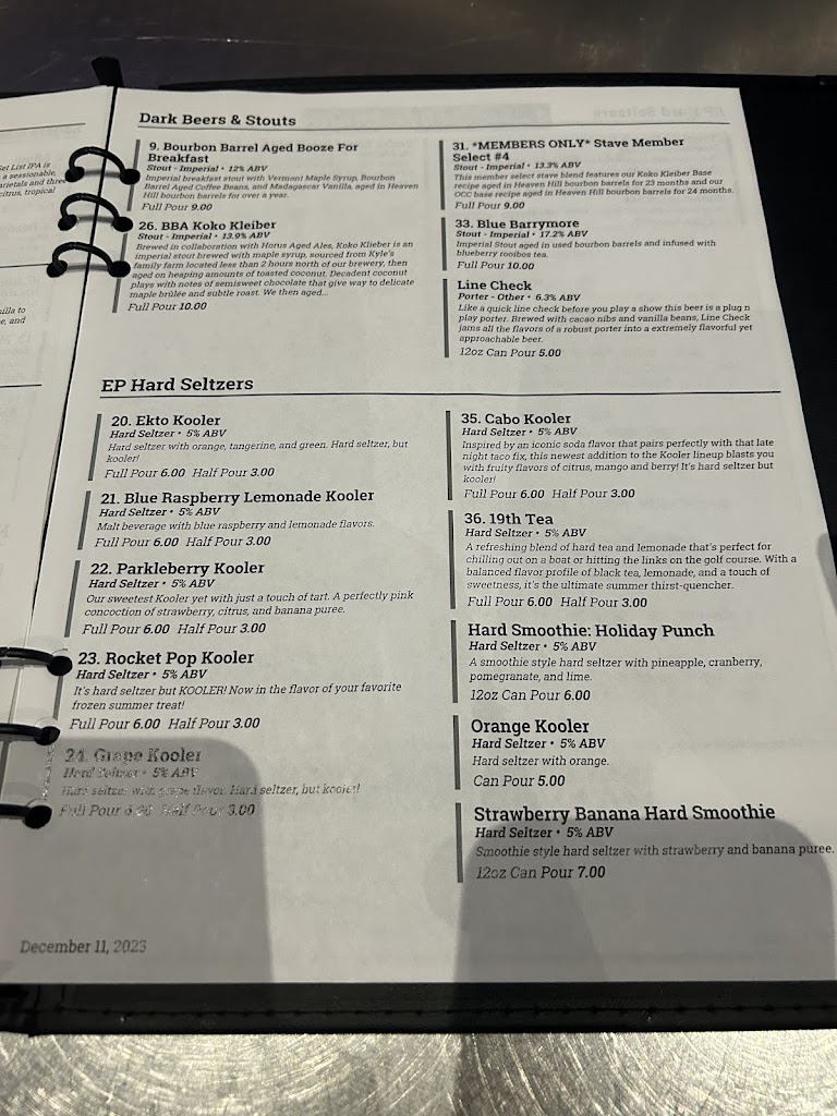 The beers and brandys themselves are fantastic, I highly recommend any of the bourbon barrel beers or the ginger brandy. The ginger brandy on its own tastes like a gingersnap cookie. Eagle Park is also a great food spot as their currywurst poutine was delicious.
