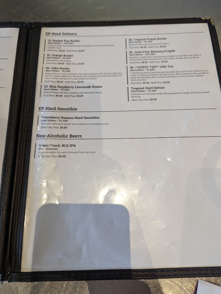 Good selection of beer, seltzer and cocktails. They have both an inside and outside area. Reasonable prices and good service. It was a trifecta.