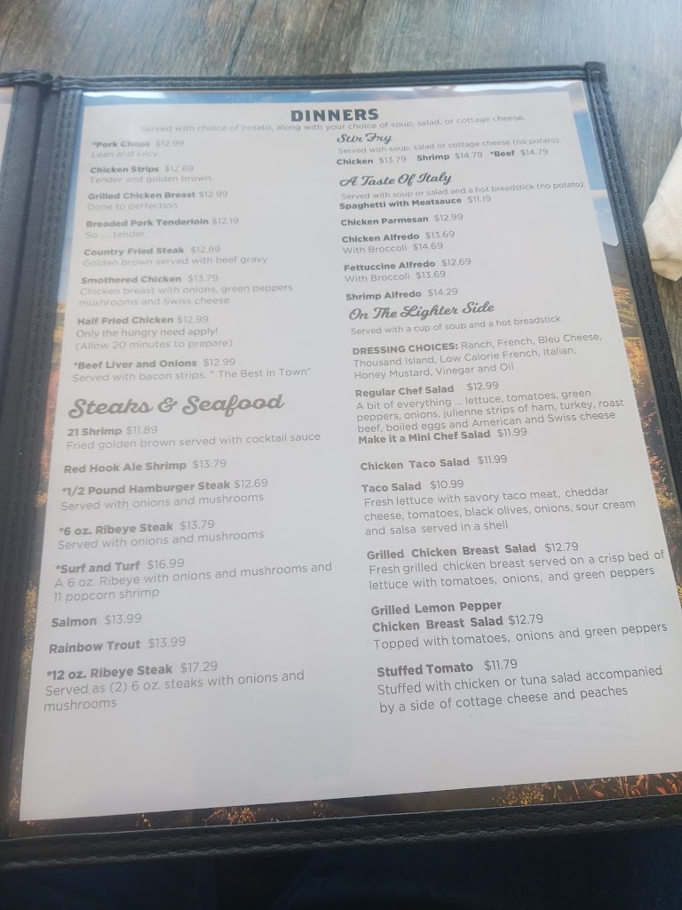 Good home cooking dining experience. The staff has always been very friendly, old-time dining counter seating, booths, and tables. Love breakfast here. Good menu selection of standard family, home cooking restaurant faves. One thing to note, they are a cash only restaurant. They have an ATM on site, but no cards or checks are accepted. Be prepared if you operate outside of cash like we do. We were almost caught without a means of payment!