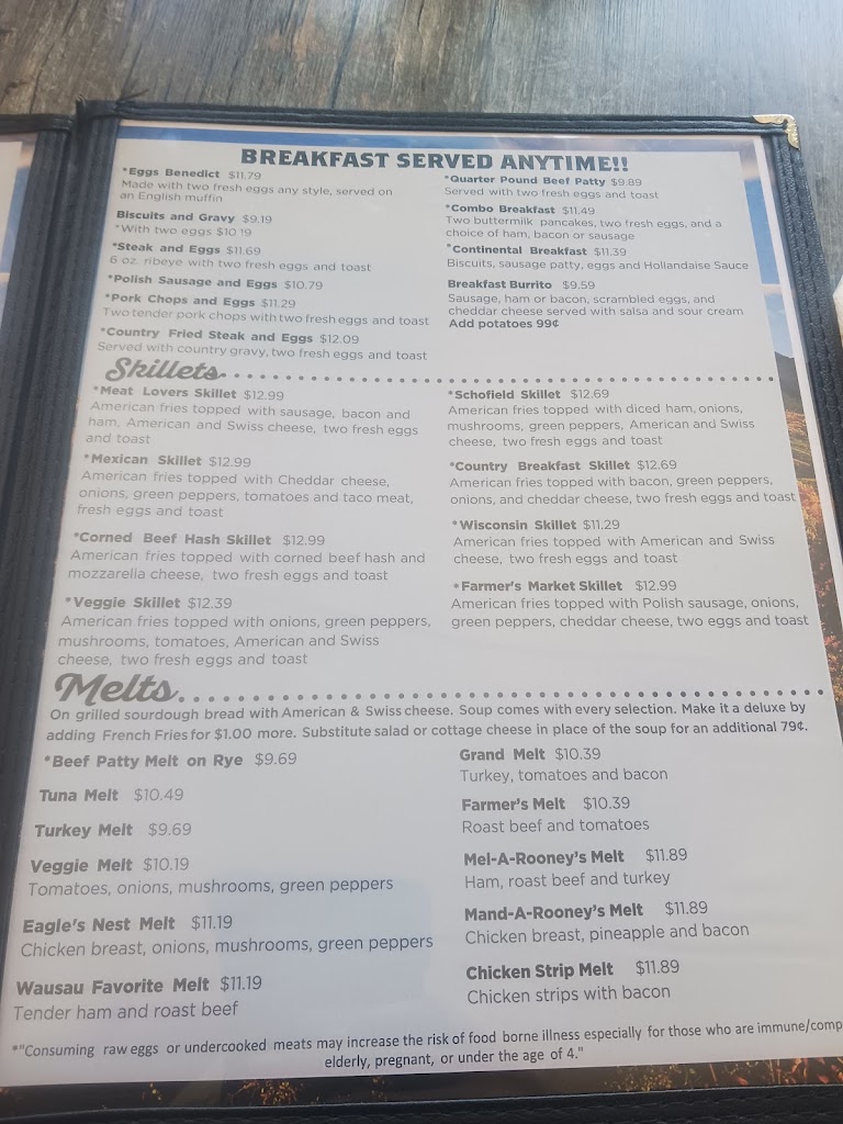 Best bang for the buck in dining in the wausau area. Breakfast portions are more than enough to fill my belly after a late night in downtown wausau. The Denver omlette and hashbrowns were perfectly cooked and very scrumptious. Coffee is endless and the staff is very sweet.