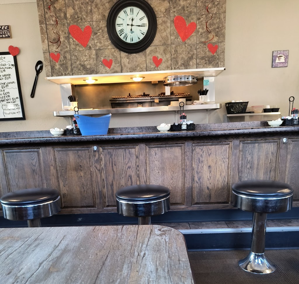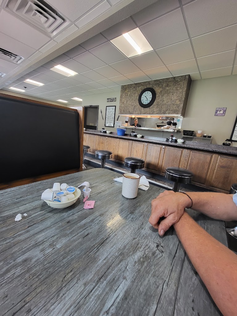 Cute place to stop for great breakfast! You can sit in booths or at counter. There are tables in back for bigger groups. Food is fast and delicious. Stop on Wednesday and get the best homemade potato pancakes 🥞 all day!!