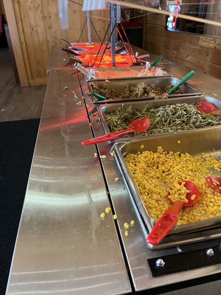 The salad in the salad bar was well past its prime, wilted and turning red. Chicken noodle soup on the bar and chili both seemed lime they came from a package and reheated, and the rest of the salad bar was just as "great" as the lettuce, and cross contaminated with everything else there. And who puts chocolate pudding on a salad bar? (Which eneded up being in other things like the carrots, eggs ect).