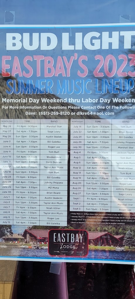 We had our wedding here this past Saturday. The employees at Eastbay made everything so easy and enjoyable for us. Dave has one of the most beautiful venues and you can't beat the deal he gives you!! Denise kept in contact with me and was so easy to work with. She was always there to answer all of my questions. Deb went over the top for us the night of our rehearsal and the day of our wedding. The whole crew was top notch. All of our guests absolutely loved the food. I would recommend anyone that is looking for the perfect venue for their upcoming wedding or get together check Eastbay Lodge out for sure!!