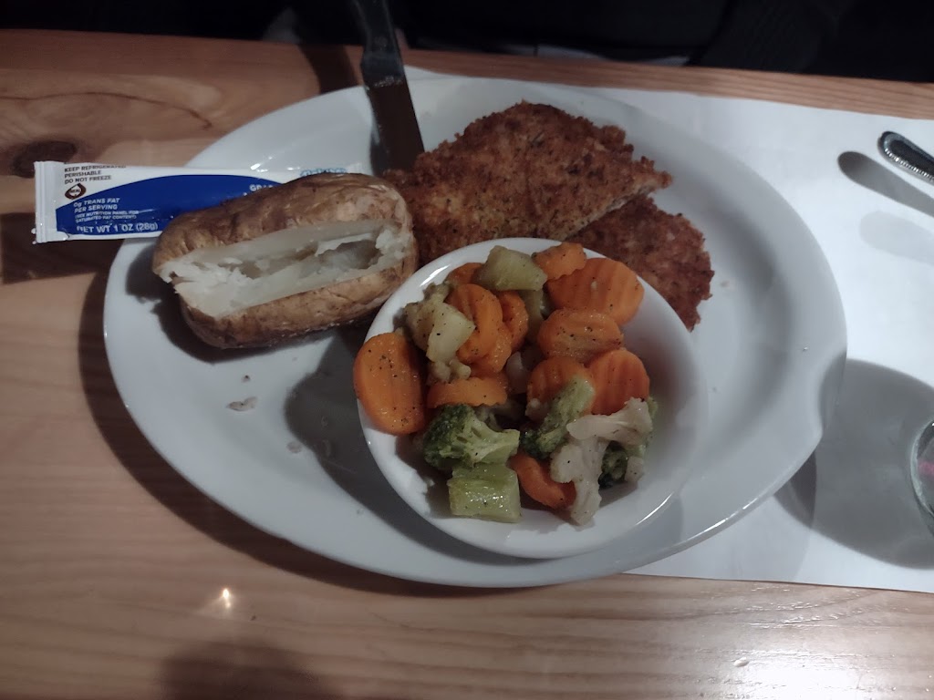 I ordered the pan fried Walleye, which was just OK. The clam chowder and baked potato were good. Several others in the group got chicken and they all said it was overcooked and chewy. My friend got the loaded baked potato and the server didn’t tell her it cost more, nor did it say it on the menu. Overall, I felt it was pricey, the server “prickly,” and the food OK but not worth the price.