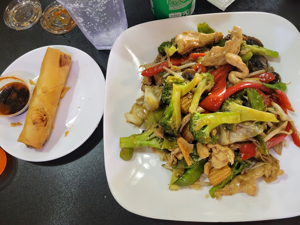 Spring rolls are huge and egg rolls are awesome. We both got stir-fry and we had huge potions . We both took half our meal home with us . They have a service counter to order and a service station to put your dishes in when done .