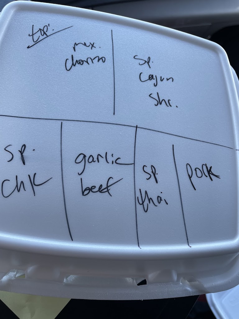 My son goes here all the time, so he bought several and brought them over for dinner. I ordered spicy Cajun shrimp. It wasn't horrible, and I ate most of it because I was hungry, but there wasn't any shrimp. Then I tried the ginger pork. There was one piece of pork in it. I wasn't impressed.