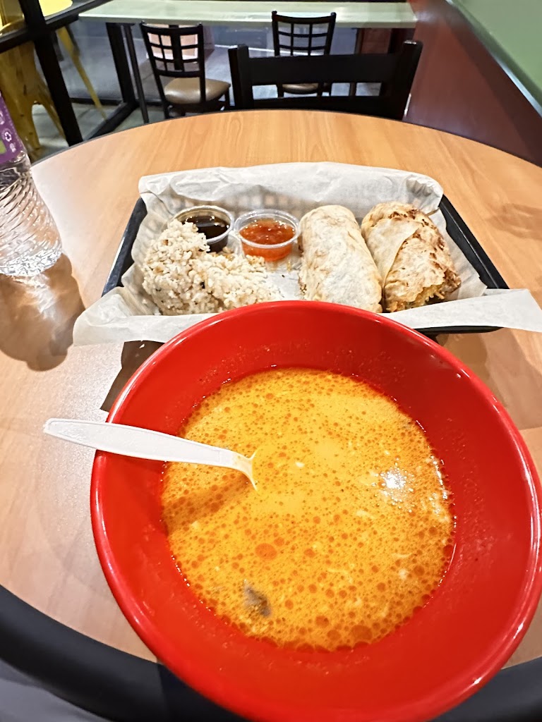 I enjoy the Christian music when walking in! I love the fact that the eggrolls are baked; the nice size of them, no seed oils used; fresh ingredients; and no nasty thickners! The newer cheeseburger roll is so tasty! The spicy curry soup is plentiful and bursting with flavor; yum 😋 It's so nice to have a healthy option nearby!