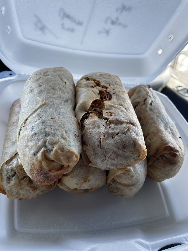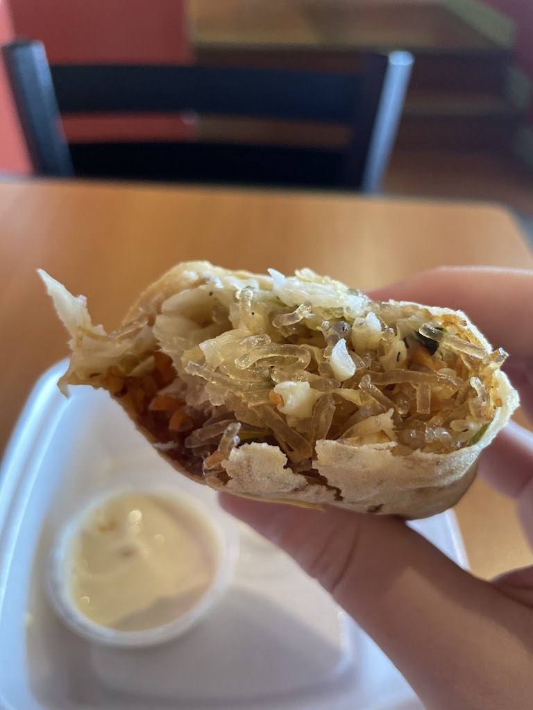 I tried the Eggrolls Inc near Walmart and ordered One spicy chicken roll and one Chicken jerk roll.